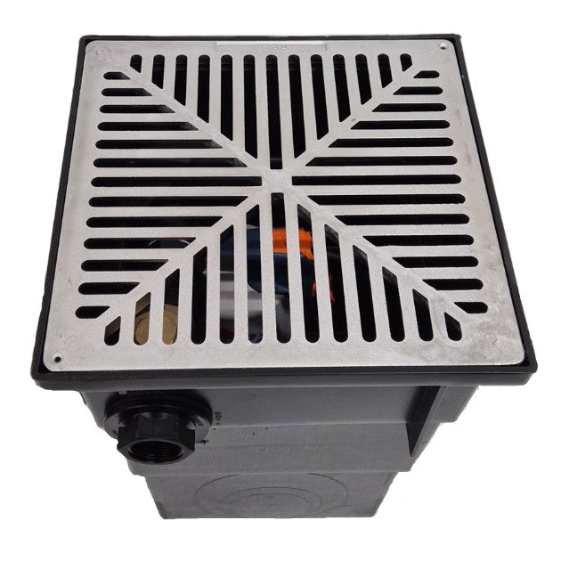 The 30L pump Sump consists of a high quality polyethylene sump and grate, with a vortex pump which allows the water to be sent to the kerb or storage tank, depending on the application.